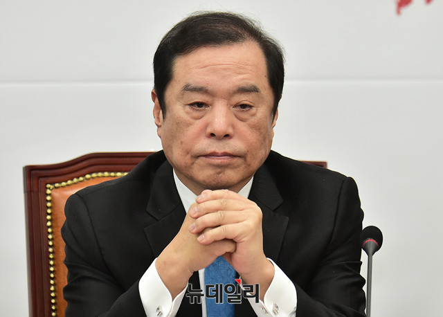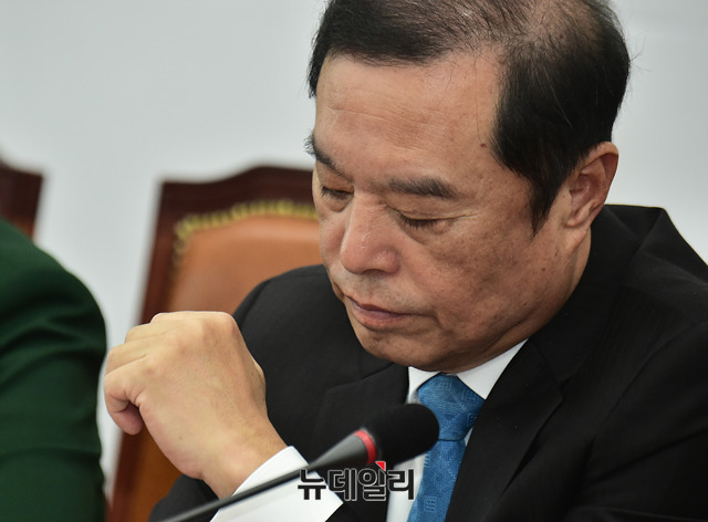 김병준 자유한국당 비상대책위원장이 24일 오전 국회에서 열린 비상대책위원회의에 참석해 생각을 하고 있다.