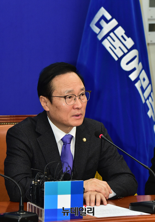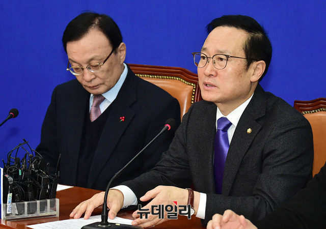 홍영표 더불어민주당 원내대표가 24일 오전 국회에서 열린 최고위원회의에서 모두발언을 하고 있다.
