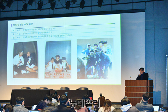 김창환 미디어라인엔터테인먼트 회장과 이정현 대표가 26일 오후 서울 강남구 섬유센터빌딩에서 '더 이스트라이트' 사건과 관련해 긴급 기자회견을 갖고 있다.