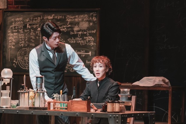 누군가의 부인도, 과학자도 아닌 한 인간으로서 오롯이 '마리 퀴리'(1867~1934) 이야기가 무대 위에 펼쳐진다.한국문화예술위원회 '2018 공연예술창작산실-올해의 신작'으로 선정된 창작뮤지컬 '마리 퀴리'가 2019년 1월 6일까지 대학로예술극장 대극장에서 공연된다.김현우 연출은 지난 26일 진행된 프레스콜에서 "기존의 여성 캐릭터들이 종속적인 관계인 누군가의 아내, 어머니, 딸로서 비중을 치중하는 작품이 많았다면 '마리 퀴리'는 과학자로서의 딜레마와 신념, 가치관의 갈등에 초점을 맞췄다"고 밝혔다.이어 "견고하게 형성돼 있는 남성중심의 사회에서 마리가 어떻게 성취해 나가는냐가 기본 설정이다. 단순히 위인전에 나오는 평면적인 인물로 묘사하는 게 아니라 우리가 살면서 경험할 수 있는 고난에 대해 심사숙고할 수 있는 계기를 동일하게 만날 수 있지 않을까 한다"고 덧붙였다.'마리 퀴리'는 역사적 사실에 상상력을 덧붙인 팩션 뮤지컬로 폴로늄·라듐 최초 발견, 여성 최초 노벨상 수상, 노벨상 최초 중복 수상(1903·1911년) 등 마리 퀴리의 화려한 성과만 비추지 않는다.남편 피에르의 죽음, 라듐 공장 직공들과의 만남 등의 이야기가 상상으로 가미돼 과학자 마리 퀴리가 아닌, 자신의 연구가 초래한 비극에 좌절하지만 그에 정면으로 맞서는 한 인간의 모습을 그려낸다.