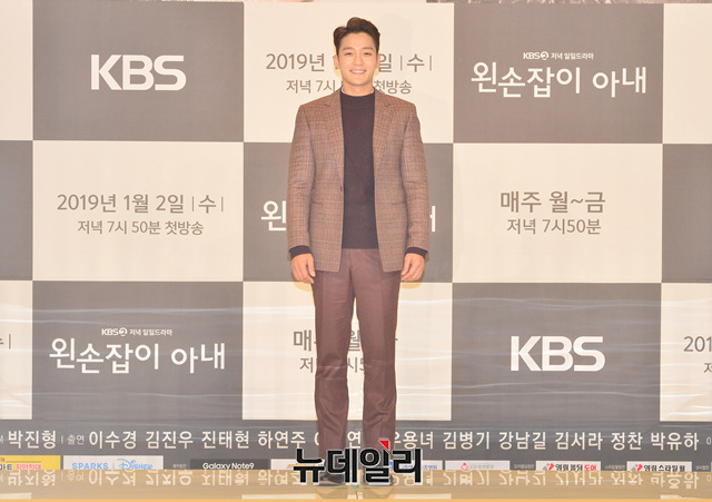 배우 김진우가 27일 서울 영등포 타임스퀘어에서 열린 KBS 2TV 새 일일드라마 ‘왼손잡이 아내’ 제작발표회에 참석해 포토타임을 갖고 있다. 김진우는 충격적인 사고로 인해 모든것을 잃은 남자 이수호 역과 엄청난 재벌 3세지만 집안에서 인정받지 못하는 박도경 역을 맡았다.'왼손잡이 아내'는 충격적인 사고로 다른 사람의 인생을 살게 된 남자와 신혼여행지에서 사라진 남편을 찾아 헤매는 여자가 진짜 사랑과 가족을 찾아가는 반전 멜로 드라마다. 오는 1월 2일 첫 방송.