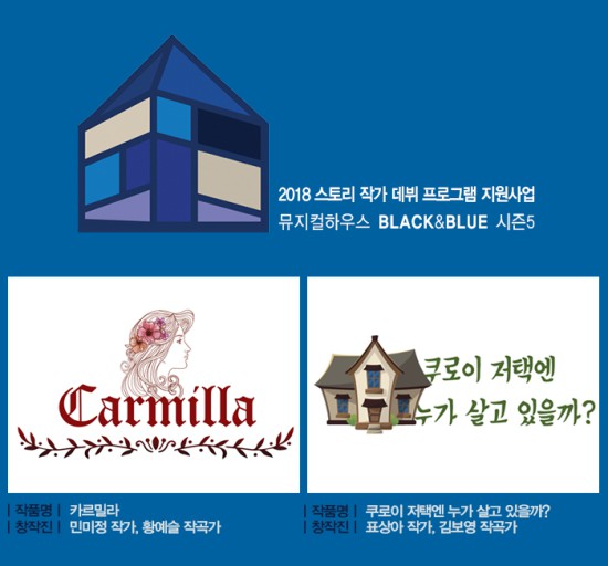충무아트센터의 스토리 작가 데뷔 프로그램 '뮤지컬하우스 블랙앤블루 시즌5'가 최종 쇼케이스 작품 2개를 선정했다다양한 분야의 전문가들로 구성된 심사위원단의 평가를 거쳐 '카르밀라'와 '쿠로이 저택엔 누가 살고 있을까?'가 최종 쇼케이스 공연으로 결정됐다.김동연 연출, 김태형 연출, 원미솔 음악감독, 채한울 음악감독, 한아름 작가, 한정석 작가 등 창작진들과 6개월간 진행된 멘토링을 통해 5개 작품의 30분 비공개 리딩 경연이 지난 17일 충무아트센터에서 열렸다.백은혜, 성두섭, 안재영, 이예은, 홍승안 등 실력파 뮤지컬 배우 22인이 참여해 리딩 공연의 완성도를 더했다. 이들은 새로운 창작 뮤지컬에 대한 관심과 애정으로 리딩 공연에 임했다.소외 받는 존재들의 이야기를 그려낸 '카르밀라'는 아름다운 선율의 음악과 섬세한 스토리 구성이 돋보였다. 일제시대 버려진 저택에서 일어나는 기묘한 이야기를 담은 '쿠로이 저택엔 누가 살고 있을까?'는 신선한 소재와 강렬한 에너지로 즐거움을 선사했다.선정된 두 작품은 추가 멘토링 과정을 거쳐 1시간의 쇼케이스 작품으로 탄생해 2019년 3월 관객 앞에 나선다.[사진=충무아트센터]