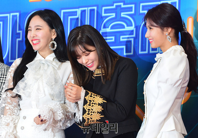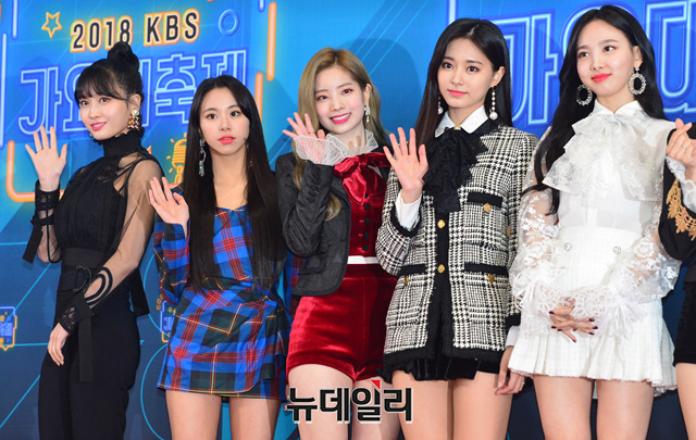 트와이스가 28일 오후 서울 여의도 KBS 신관 웨딩홀에서 열린 '2018 KBS 가요대축제' 레드카펫 행사에서 포토타임을 갖고 있다. '2018 KBS 가요대축제'는 이날 8시 30부터 여의도 KBS홀에서 진행되며, KBS 2TV에서 생중계 된다.