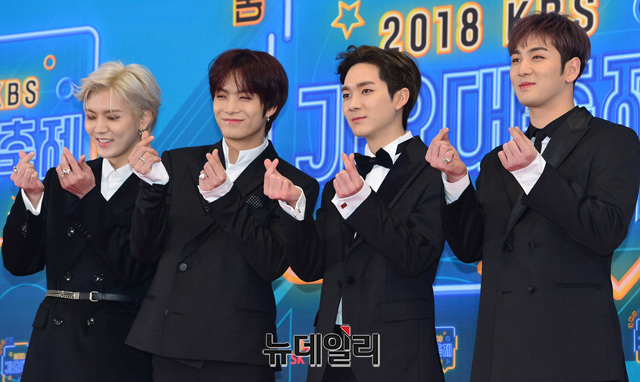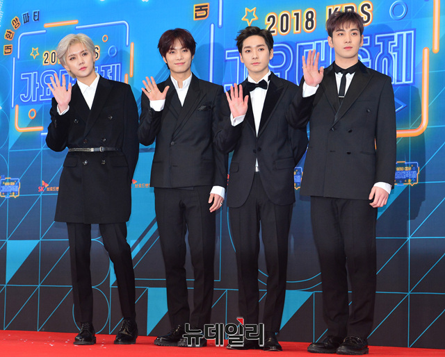 아이돌그룹 뉴이스트W가 28일 오후 서울 여의도 KBS 신관 웨딩홀에서 열린 '2018 KBS 가요대축제'에 참석해 포토타임을 갖고 있다. '2018 KBS 가요대축제'는 이날 8시 30부터 여의도 KBS홀에서 진행되며, KBS 2TV에서 생중계 된다.