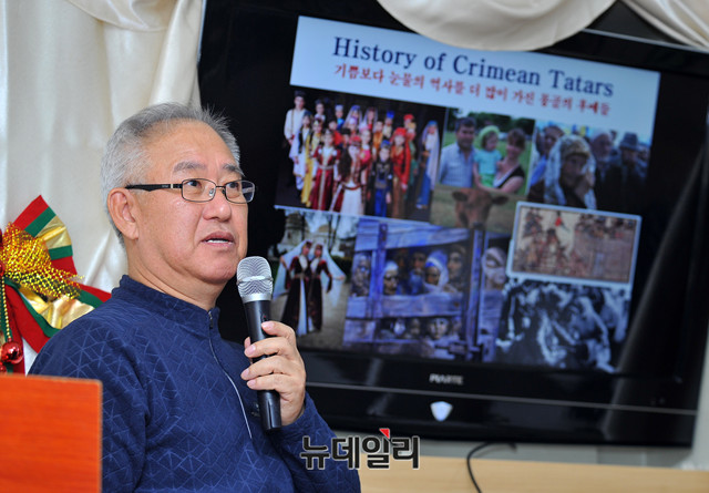 박원길 한국몽골학회 이사장이 28일 오후(현지시간) 몽골 울란바토르에 위치한 한 음식점에서 열린 코리아글로브 주최 '한몽 800주년 기념 토론 및 몽한 친선의 밤' 행사에서 '형제의 맹'을 주제로 강의를 하고 있다.이날 행사는 1218년 12월, 고려가 평양 옆 강동성을 점거한 거란과 싸우던 강동성 전투에서 연합군이던 징기스칸의 원수 합진과 고려의 원수 조충 병마사 김취려가 몽골의 제안에 따라 '형제의 맹약'을 맺은 지 800년을 기념하는 자리다.행사에는 한반도선진화연대 회원과 주한 몽골유학생협회 'MAGIKO' 회원들이 참석했다. (몽골 울란바토르=뉴데일리 이기륭 기자)