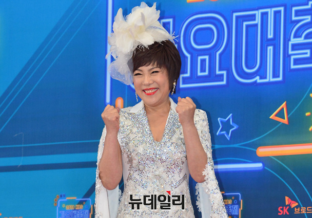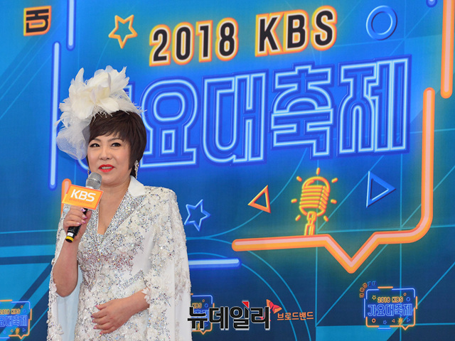 가수 김연자가 28일 오후 서울 여의도 KBS 신관 웨딩홀에서 열린 '2018 KBS 가요대축제’에 참석해 포토타임을 갖고 있다.