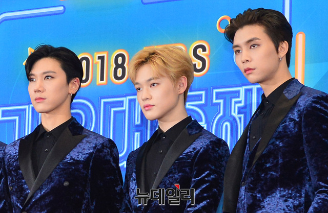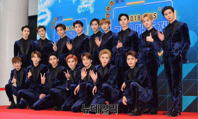 아이돌그룹 NCT127이 28일 오후 서울 여의도 KBS 신관 웨딩홀에서 열린 '2018 KBS 가요대축제’에 참석해 포토타임을 갖고 있다.