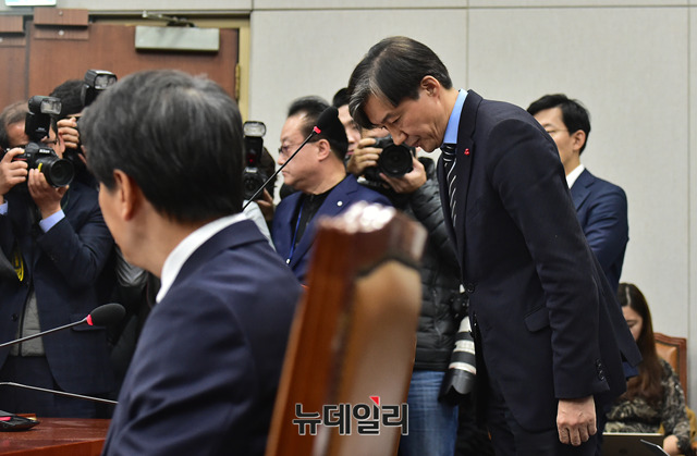 조국 청와대 민정수석이 31일 오전 국회에서 열린 운영위원회 전체회의에서 참석해 업무보고 마친뒤 인사를 하고 있다.