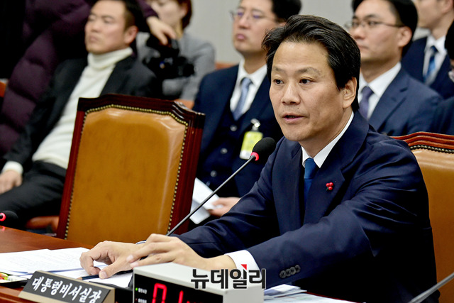임종석 대통령 비서실장이 31일 오후 국회에서 열린 운영위원회 전체회의에서 참석해 의원들의 질문에 답하고 있다.