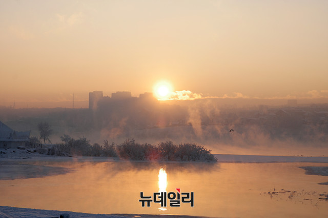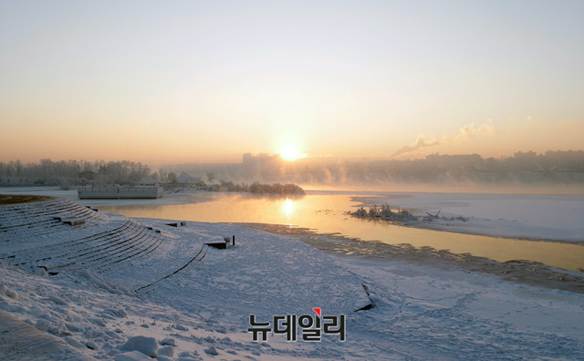 2018년 무술년 마지막 날인 31일 러시아 이르쿠츠크 앙카라 강(Angara river)에서 마지막 태양이 저물고 있다. (러시아 이르쿠츠크=뉴데일리 이기륭 기자)