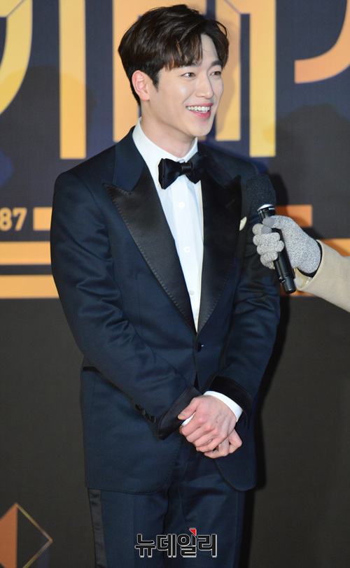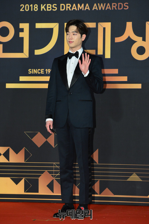 배우 서강준이 31일 오후 서울 여의도 KBS홀 야외광장에서 열린 '2018 KBS 연기대상' 레드카펫 행사에서 포토타임을 갖고 있다.