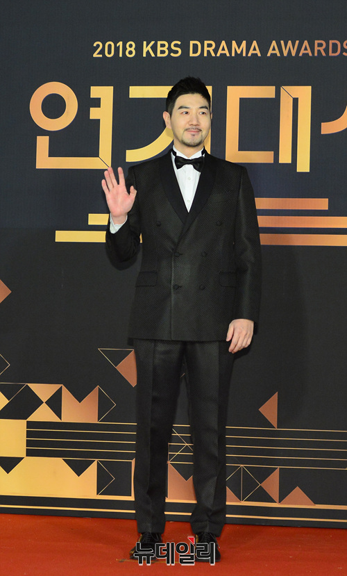 배우 한상진이 31일 오후 서울 여의도 KBS홀 야외광장에서 열린 '2018 KBS 연기대상' 레드카펫 행사에서 포토타임을 갖고 있다.