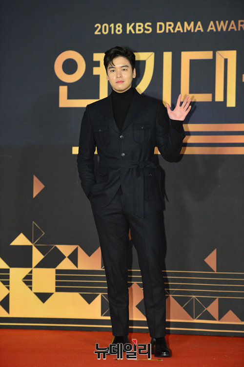 배우 이장우가 31일 오후 서울 여의도 KBS홀 야외광장에서 열린 '2018 KBS 연기대상' 레드카펫 행사에서 포토타임을 갖고 있다.