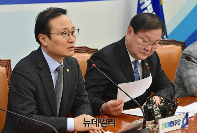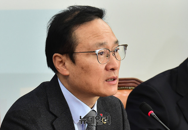 홍영표 더불어민주당 원내대표가 3일 오전 국회에서 열린 정책조정회의에서 모두발언을 하고 있다.