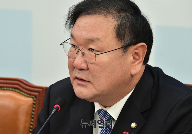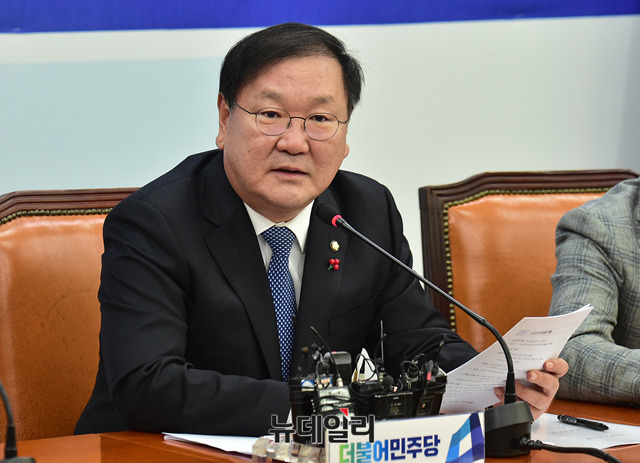 김태년 더불어민주당 정책위의장이 3일 오전 국회에서 열린 정책조정회의에서 모두발언을 하고 있다.