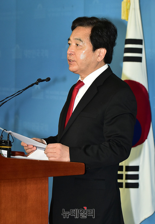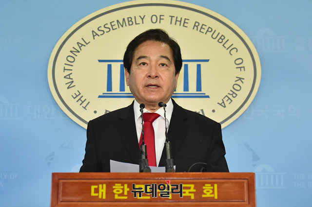 심재철 자유한국당 의원이 3일 오전 국회 정론관에서 신재민 전 기재부 사무관의 KT&G 사장 교체폭로 관련 기자회견을 하고 있다.