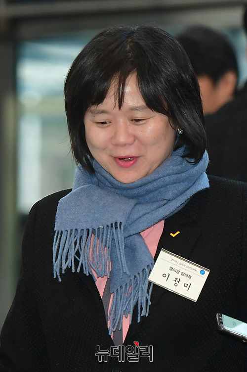 이정미 정의당 대표가 3일 오후 서울 강남구 코엑스 그랜드볼룸에서 열린 대한상공회의소 신년인사회에 입장하고 있다.