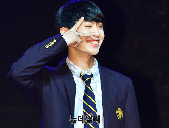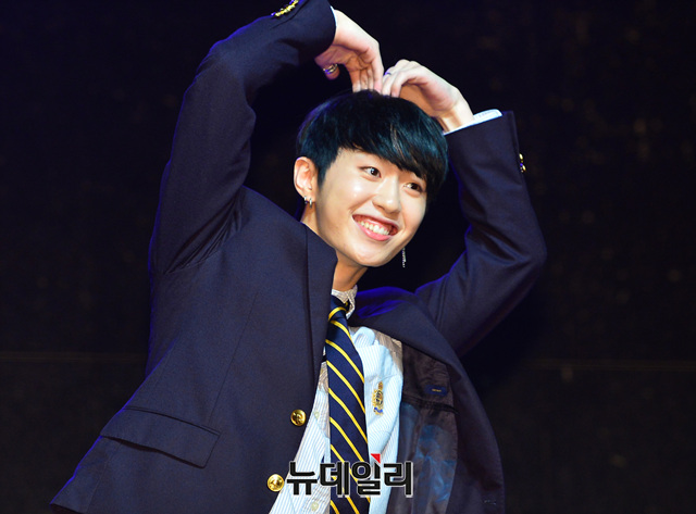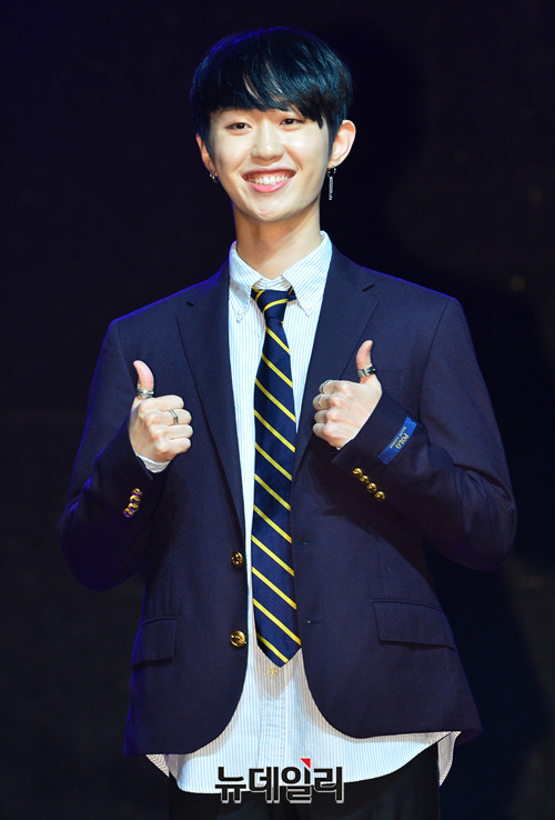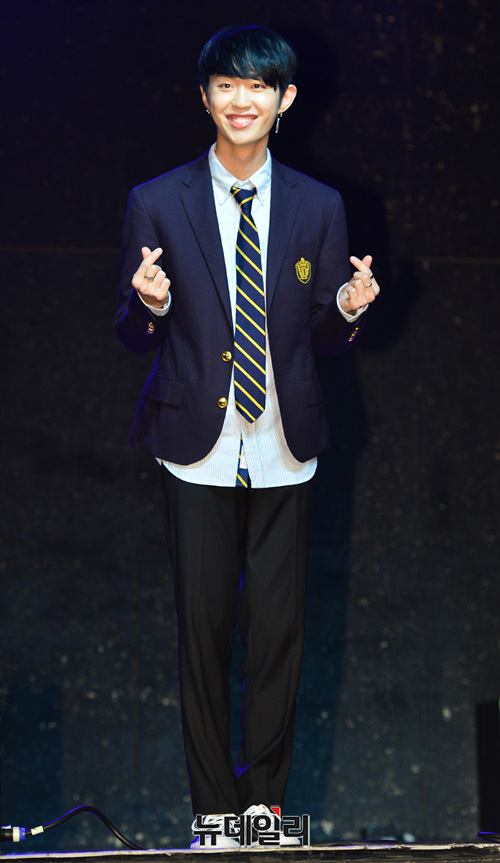 신인 아이돌그룹 '몬트(MONT)' 멤버 빛새온이 4일 오후 서울 마포구 하나투어 브이홀에서 열린 데뷔 쇼케이스에서 포토타임을 갖고 있다.