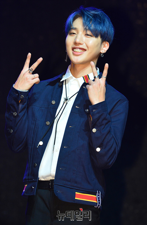 신인 아이돌그룹 '몬트(MONT)' 멤버 나라찬이 4일 오후 서울 마포구 하나투어 브이홀에서 열린 데뷔 쇼케이스에서 포토타임을 갖고 있다.
