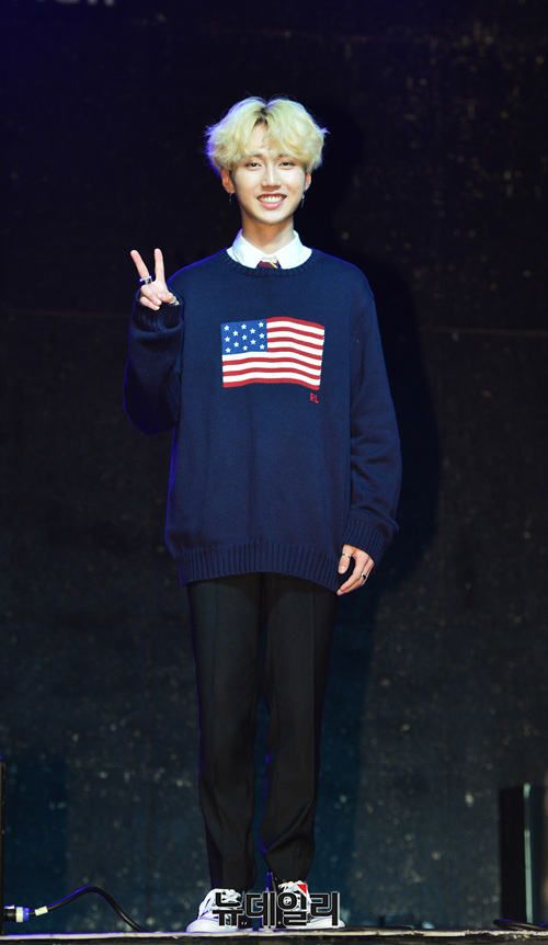 신인 아이돌그룹 '몬트(MONT)' 멤버 로다가 4일 오후 서울 마포구 하나투어 브이홀에서 열린 데뷔 쇼케이스에서 포토타임을 갖고 있다.