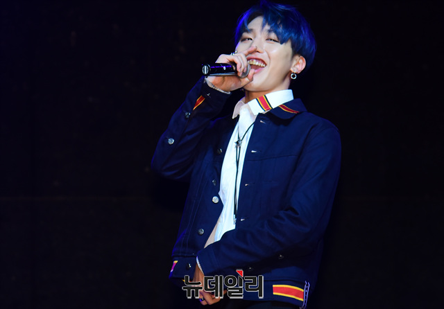 신인 아이돌그룹 '몬트(MONT)'의 나라찬이 4일 오후 서울 마포구 하나투어 브이홀에서 열린 데뷔 쇼케이스에서 무대를 선보이고 있다.