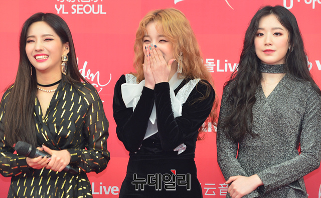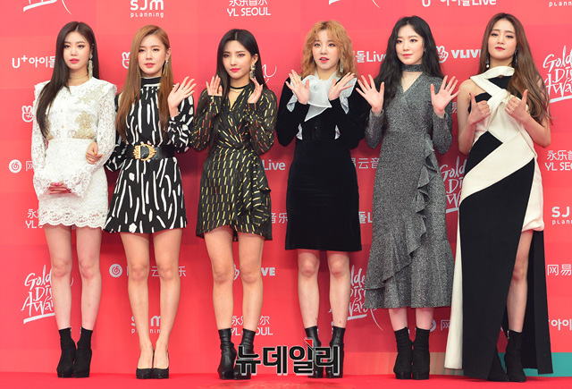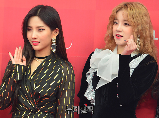 걸그룹 (여자)아이들이 5일 오후 서울 구로구 고척스카이돔에서 열린 '제 33회 골든디스크 어워즈'에서 포토타임을 갖고 있다.