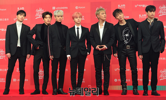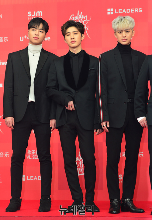 아이돌그룹 아이콘이 5일 오후 서울 구로구 고척스카이돔에서 열린 '제 33회 골든디스크 어워즈'에서 포토타임을 갖고 있다.