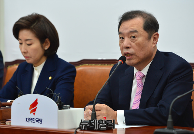 김병준 자유한국당 비상대책위원장이 7일 오전 국회에서 열린 비상대책위원회에서 모두발언을 하고 있다.