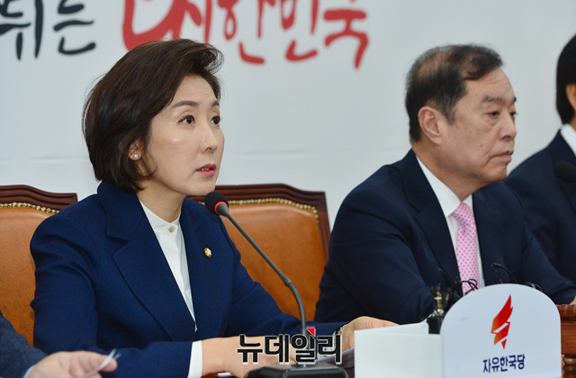 나경원 자유한국당 원내대표가 7일 오전 국회에서 열린 비상대책위원회에서 모두발언을 하고 있다