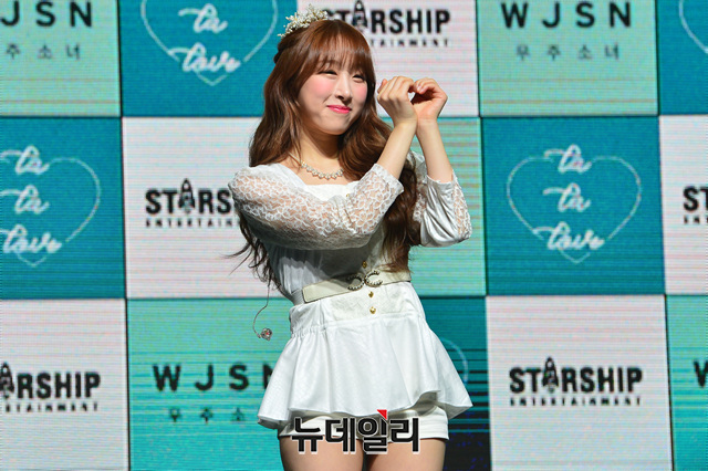 우주소녀 수빈이 8일 오후 서울 광진구 예스24라이브홀에서 열린 컴백 앨범 'WJ STAY?(우주스테이?)' 쇼케이스에서 포토타임을 갖고 있다.
