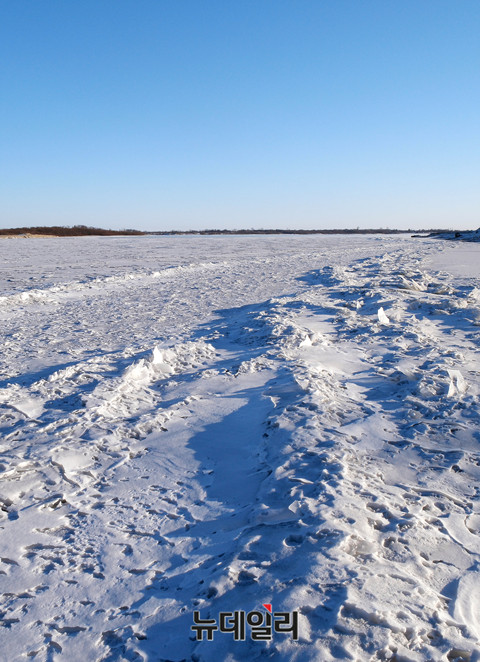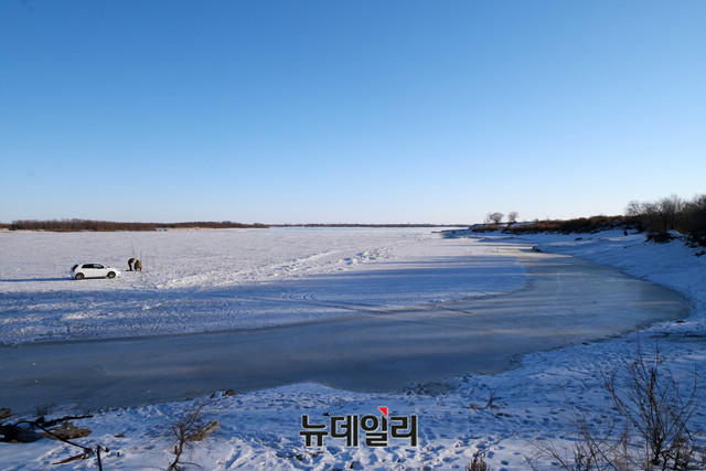 러시아 스보보드니에 위치한 제야강이 지난 3일 영하 23도에 기온에 얼어있다. 1921년 6월 28일 스보보드니 체스노코프역(당시 소련 수라세프카 역)에서 일어난 '자유시 참변' 현장에서 빠져 나온 독립군 대부분이 이 강을 건너다 빠른 물살에 휩쓸려 숨졌다. (러시아 스보보드니=뉴데일리 이기륭 기자)