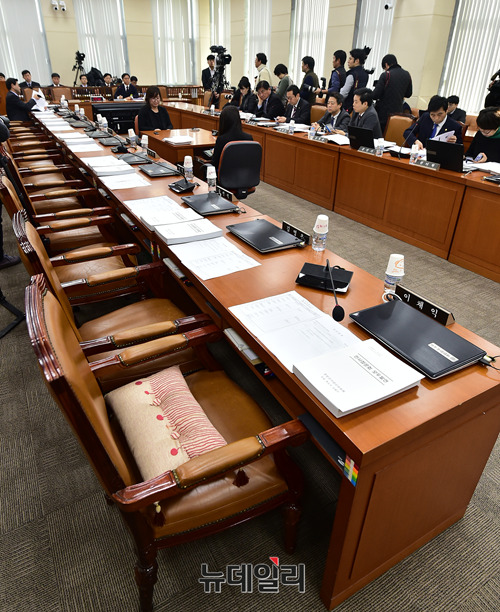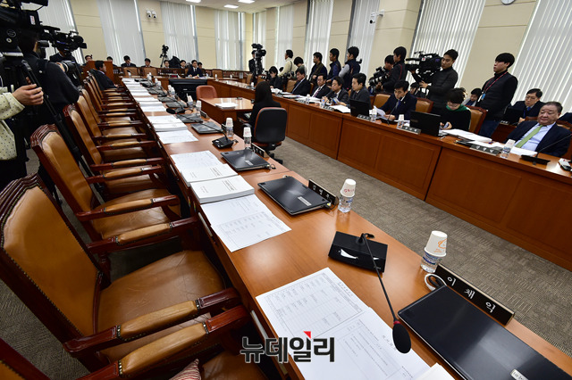 조해주 중앙선거관리위원회 위원 후보자 인사청문회가 9일 오전 국회에서 열린 가운데 자유한국당 소속 의원들의 불참으로 의석이 비어있다.