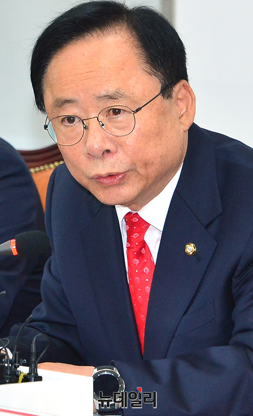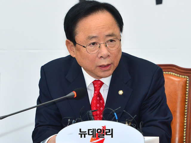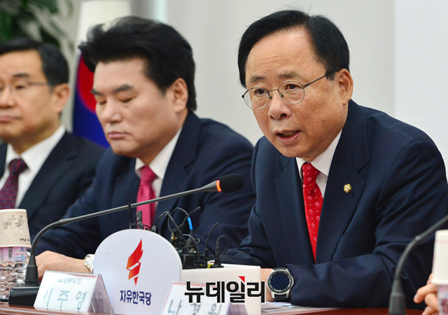 이주영 자유한국당 의원이 9일 오전 국회에서 열린 원내대표-중진의원회의에서 모두발언을 하고 있다.
