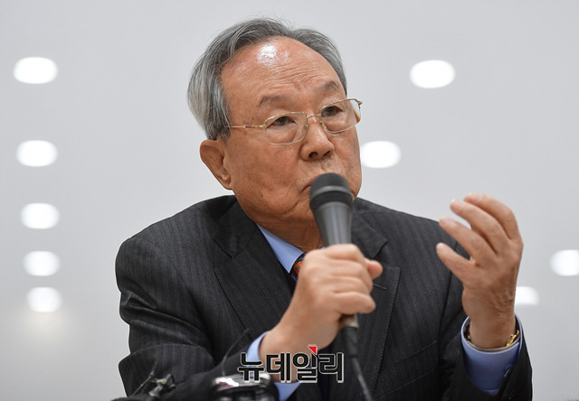 박관용 전 국회의장이 9일 오전 서울 종로구 센터포인트 광화문빌딩에서 열린 '북한 외교관 조성길 가족 한국행 지지 시민연대' 기자간담회에서 발언하고 있다.시민연대의 상임공동대표는 태영호 전 영국주재 북한 공사, 김성민 자유북한방송대표, 박관용 전 국회의장, 정대철 전 민주당 대표가 맡았다.이들은 성명을 통해 △한국정부가 이탈리아 정부에 조성길 가족의 신변안전을 보장하고, 대한민국으로 올 의향 확인 △조성길과 가족의 희망하는 나라로 갈수 있을것을 보장 △안전한 한국행을 이룰수 있도록 적극적인 노력을 요구했다.