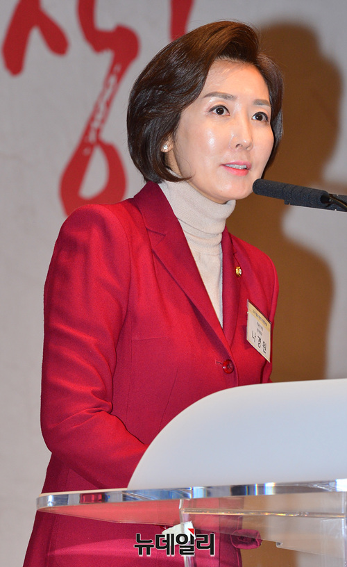 나경원 자유한국당 원내대표가 9일 오전 서울 영등포구 중소기업중앙회에서 열린 중소기업인 신년인사회에서 축사를 하고 있다.