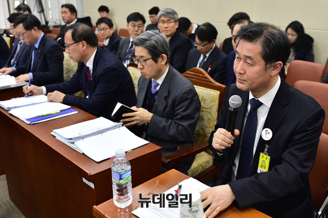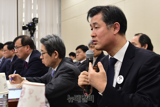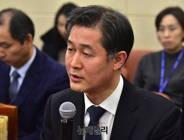 권준수 서울대학교 의과대학 교수가 9일 오전 국회에서 열린 보건복지위 강북삼성병원 의사 사망 관련 현안보고에 참고인으로 출석해 의원들의 질문에 답하고 있다.