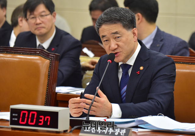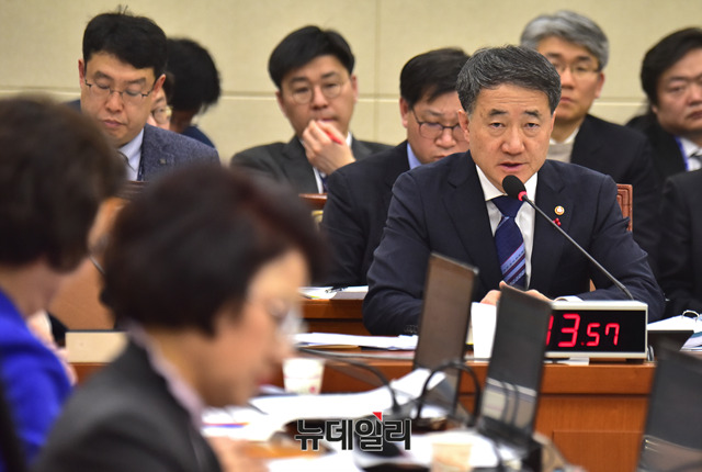 박능후 보건복지부 장관이 9일 오전 국회에서 열린 보건복지위 강북삼성병원 의사 사망 관련 현안보고에서 의원들의 질문에 답하고 있다.