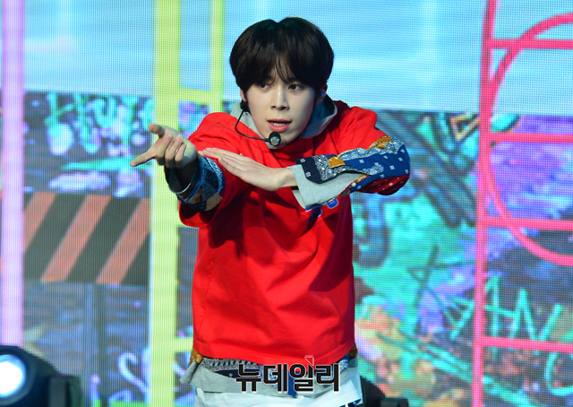 7인조 신인 아이돌그룹 'VERIVERY(베리베리)' 연호가 9일 서울 강남구 일지아트홀에서 열린 데뷔 앨범 'VERI-US(베리어스)' 쇼케이스에서 무대를 선보이고 있다.