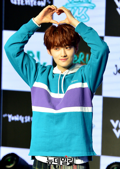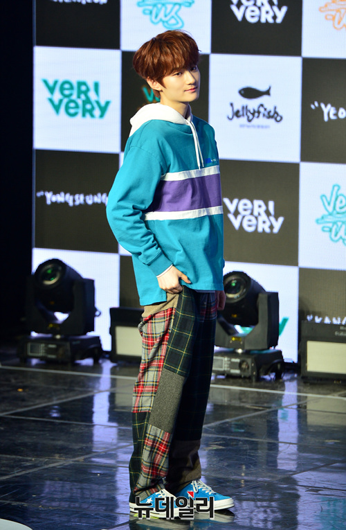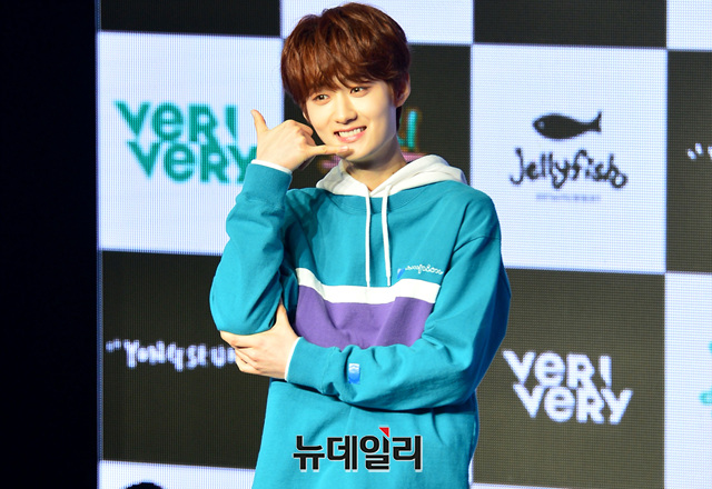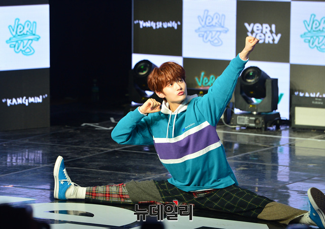 7인조 신인 아이돌그룹 'VERIVERY(베리베리)' 용승이 9일 서울 강남구 일지아트홀에서 열린 데뷔 앨범 'VERI-US(베리어스)' 쇼케이스에서 포토타임을 갖고 있다.