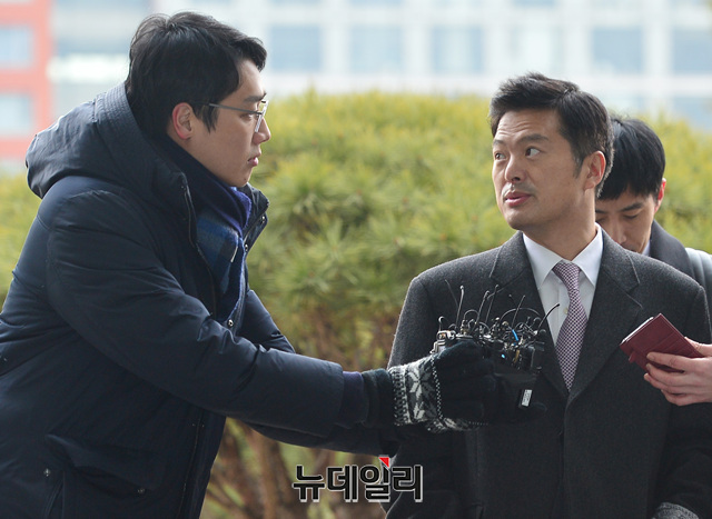 청와대 특별감찰반의 민간인 불법사찰 의혹을 제기한 김태우 전 청와대 수사관이 10일 오전 서울 송파구 서울동부지방검찰청에 참고인 자격으로 출석해 취재진들의 질문에 답하고 있다.