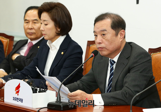 김병준 자유한국당 비상대책위원장이 10일 오전 국회에서 열린 비상대책위원회의에 참석해 모두발언을 하고 있다.