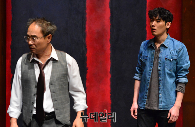 연극 '레드'는 미국 추상표현주의의 대표화가 '마크 로스코(정보석, 강신일 역)'와 그의 조수 '켄(박정복, 김도빈 역)' 사이에 충돌하는 가치관을 다룬다. 2월10까지 예술의 전당 소극장에서 공연된다.