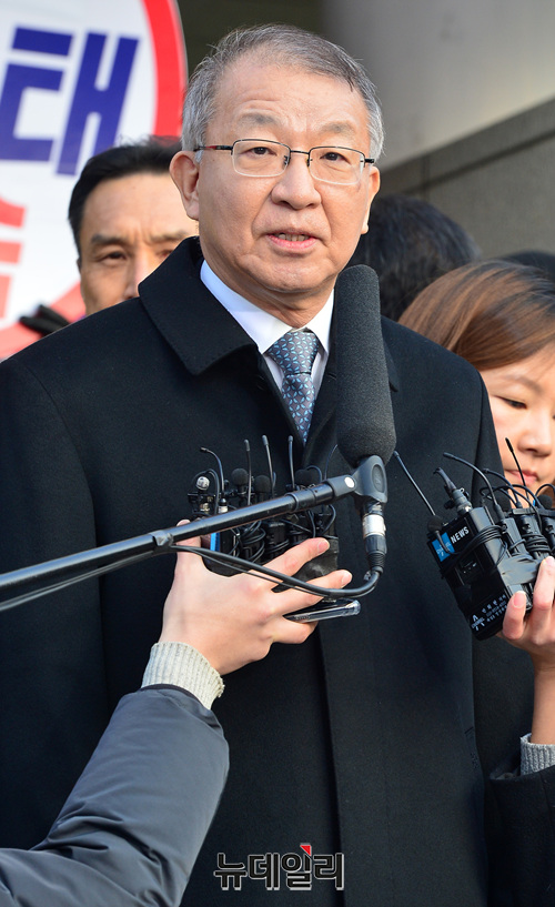 사법농단 의혹을 받고 있는 양승태 전 대법원장이 11일 오전 서울 서초구 대법원 앞에서 기자회견을 갖고 있다.