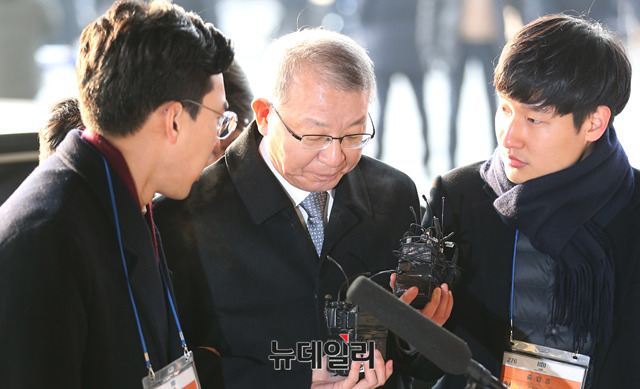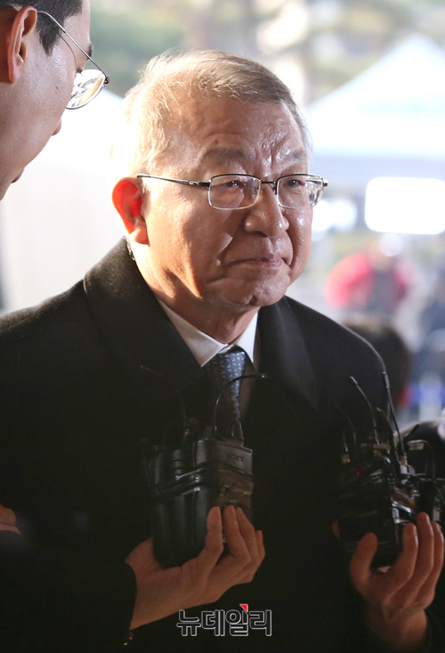 사법행정권 남용 의혹을 받고 있는 양승태 전 대법원장이 11일 오전 서울 서초구 서울중앙지방검찰청에서 피의자 신분으로 검찰 소환조사에 출석하고 있다. (사진=공동취재단)