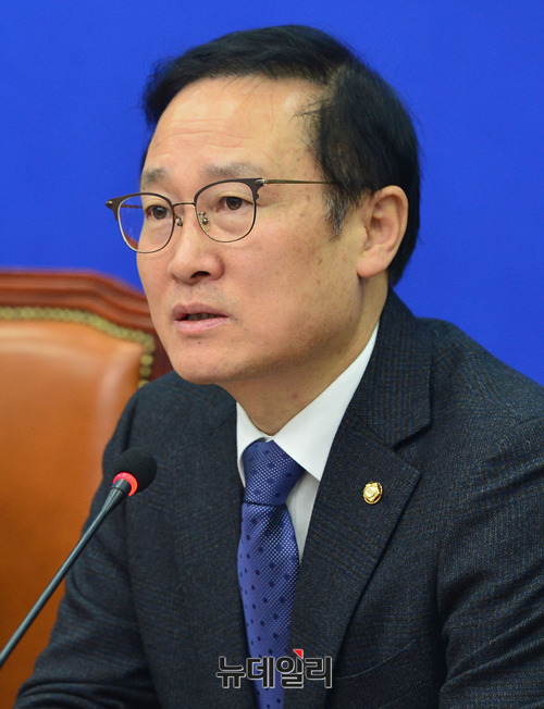 홍영표 더불어민주당 원내대표가 14일 오전 국회에서 열린 최고위원회의에서 발언을 하고 있다.