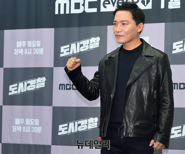 배우 조재윤이 14일 오후 서울 마포구 스탠포드호텔에서 열린 MBC에브리원 '도시경찰' 제작발표회에 참석해 포토타임을 갖고 있다.