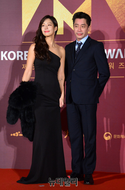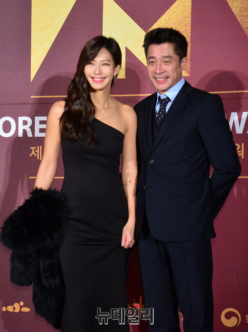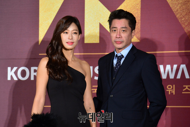 뮤지컬 배우 김진근, 정애연이 14일 오후 서울 용산구 블루스퀘어에서 '제3회 한국뮤지컬어워즈(KOREA MUSICAL AWARDS)' 레드카펫 행사에 참석해 포토타임을 갖고 있다.