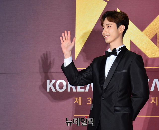 뮤지컬 배우 이승헌이 14일 오후 서울 용산구 블루스퀘어에서 '제3회 한국뮤지컬어워즈(KOREA MUSICAL AWARDS)' 레드카펫 행사에서 포토타임을 갖고 있다.