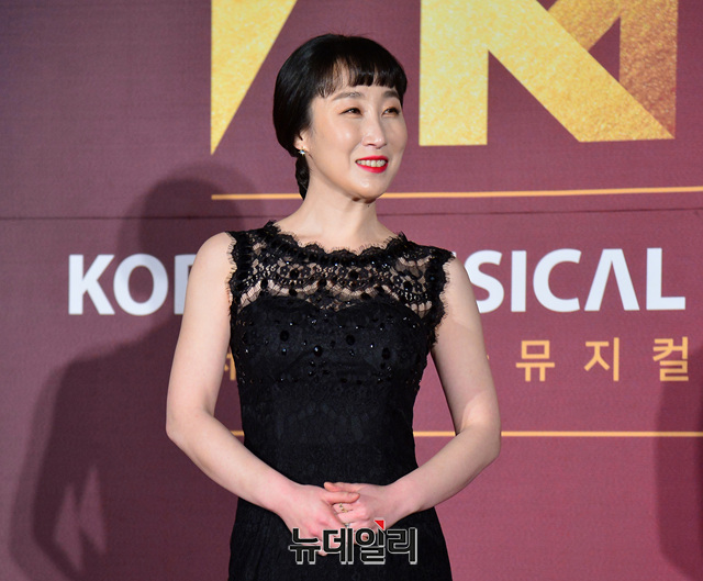 뮤지컬 배우 김국희가 14일 오후 서울 용산구 블루스퀘어에서 '제3회 한국뮤지컬어워즈(KOREA MUSICAL AWARDS)' 레드카펫 행사에 참석해 포토타임을 갖고 있다.