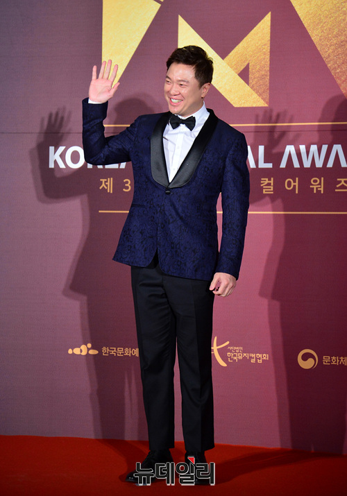 뮤지컬 배우 정성화가 14일 오후 서울 용산구 블루스퀘어에서 '제3회 한국뮤지컬어워즈(KOREA MUSICAL AWARDS)' 레드카펫 행사에 참석해 포토타임을 갖고 있다.
